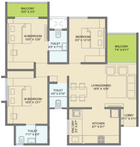 3 BHK 871 - 901 sq.ft. ₹ 63 L* (Onwards)